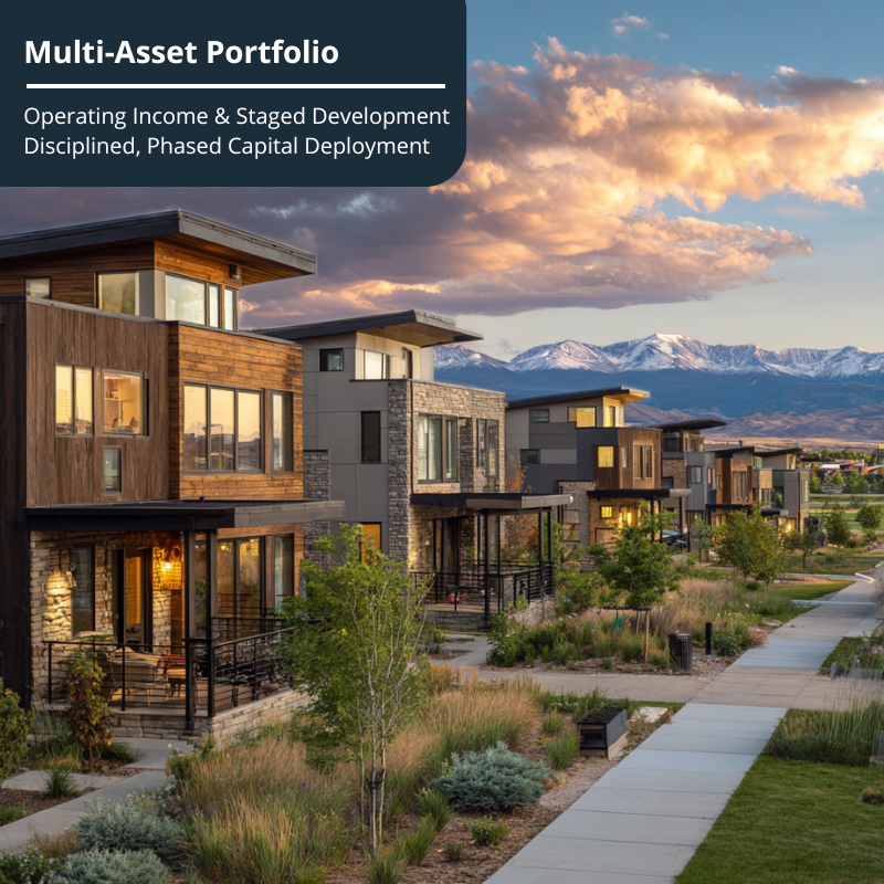 A Colorado-focused real estate fund integrating operating income and development within one portfolio — structured to generate current cash flow and long-term asset value across multiple execution timelines.